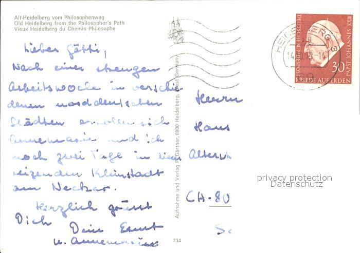 72349616 alte Postkarte Alt Heidelberg Neckar Vom Philosophenweg gesehen postalisch gelaufen Erhaltung siehe scans KatCode: 11110008221000