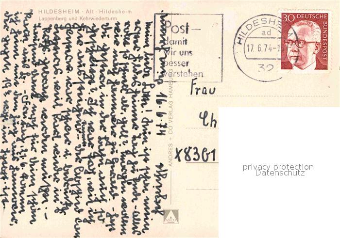 72625705 alte Postkarte Alt Hildesheim Lappenberg und Kehrwiederturm Fachwerkhaeuser postalisch gelaufen Erhaltung siehe scans [FriedD77] KatCode: 11110003254021