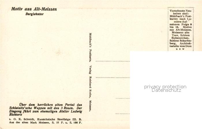 73585825 Alt Meissen Elbe Burglehntor Schleinitz’sche Wappen postalisch nicht gelaufen Erhaltung siehe scans [FriedD77] KatCode: 11110014280240