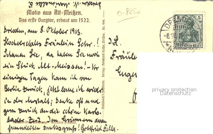 42403723 alte Postkarte Alt Meissen Elbe Burgtor Kuenstler Steinzeichnung postalisch gelaufen Erhaltung siehe scans KatCode: 11110014280240