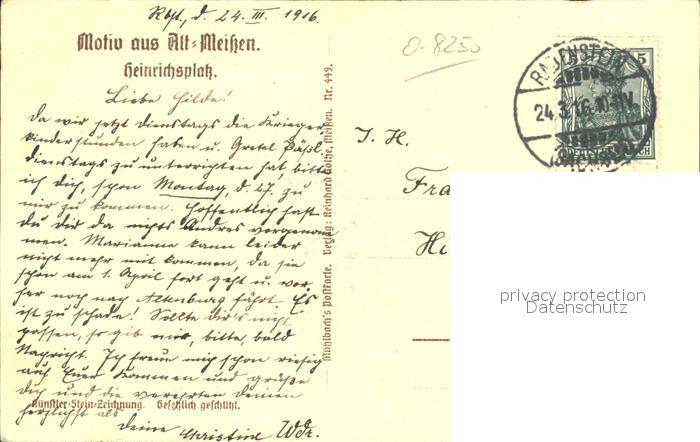 42397525 alte Postkarte Alt Meissen Elbe Heinrichsplatz Brunnen Kuenstler Steinzeichnung postalisch gelaufen Erhaltung siehe scans KatCode: 11110014280240