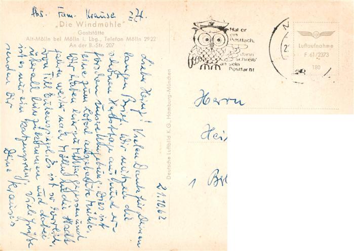 73880276 alte Postkarte Alt Moelln Die Windmuehle Gaststaette Fliegeraufnahme postalisch gelaufen Erhaltung siehe scans [WerneD78] KatCode: 11110001053002