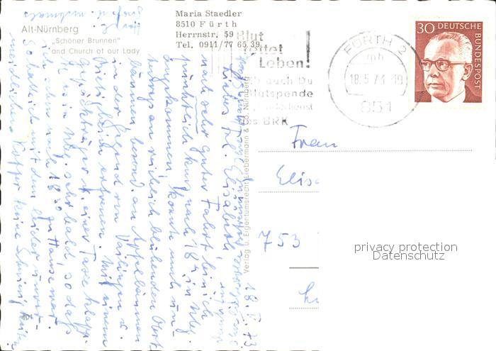 72060724 alte Postkarte Alt Nuernberg Marktplatz mit Schoenem Brunnen postalisch gelaufen Erhaltung siehe scans KatCode: 11110009564000