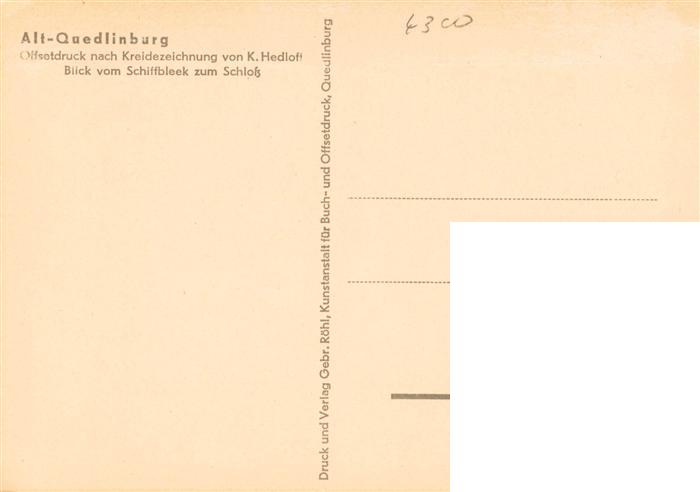 73892329 Alt Quedlinburg Blick vom Schiffbleek zum Schloss Kreidezeichnung postalisch nicht gelaufen Erhaltung siehe scans [WerneD78] KatCode: 11110015085235