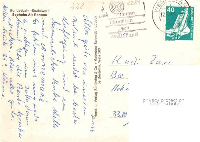 72887589 alte Postkarte Alt Rantum Bundesbahn Sozialwerk Seeheim Hallenbad postalisch gelaufen Erhaltung siehe scans [WerneD78] KatCode: 11110001054107