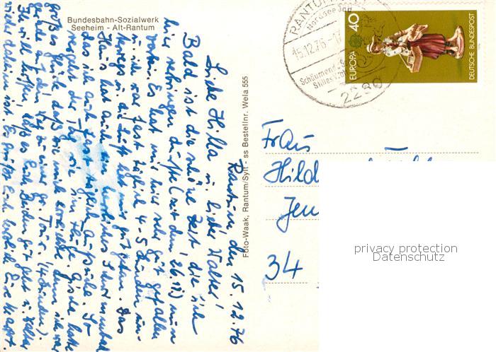 73790868 alte Postkarte Alt Rantum Bundesbahn Sozialwerk Seeheim postalisch gelaufen Erhaltung siehe scans [WerneD78] KatCode: 11110001054107