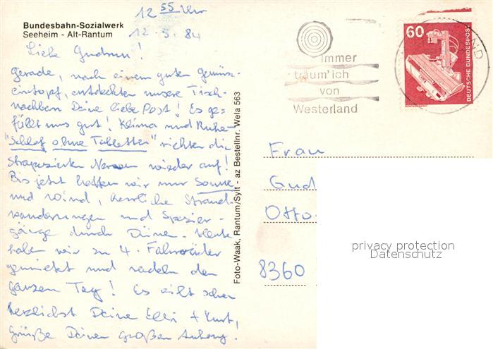 73026465 alte Postkarte Alt Rantum Seeheim postalisch gelaufen Erhaltung siehe scans [KathaD81] KatCode: 11110001054107