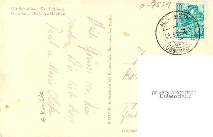 43351621 alte Postkarte Alt-Schadow Gasthaus Birkenwaeldchen postalisch gelaufen Erhaltung siehe scans [KathaD81] KatCode: 11110012061329