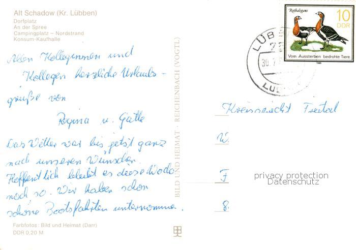 73868623 alte Postkarte Alt-Schadow Maerkische Heide Dorfplatz An der Spree Campingplatz Nordstrand Konsum Kaufhalle postalisch gelaufen Erhaltung siehe scans [WerneD78] KatCode: 11110012061329