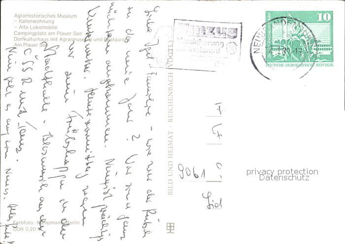 72418999 alte Postkarte Alt Schwerin Agrarhistorisches Museum Alte Lokomobile Dorfkulturhaus Katewohnung Am Plauer See postalisch gelaufen Erhaltung siehe scans KatCode: 11110013056004