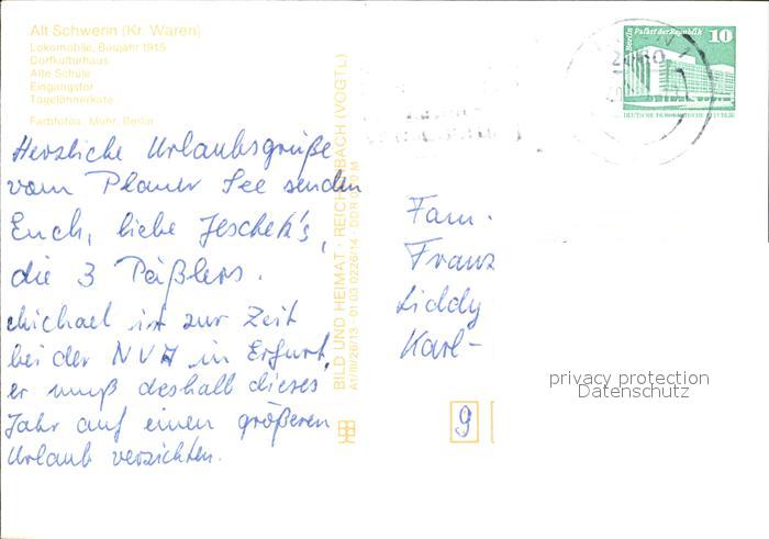 72418998 alte Postkarte Alt Schwerin Agrarhistorisches Museum Lokomobile Bj 1915 Dorfkulturhaus Alte Schule Eingangstor Tageloehnerkate postalisch gelaufen Erhaltung siehe scans KatCode: 11110013056004