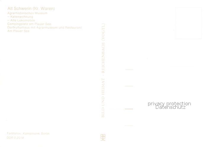 73070553 Alt Schwerin Agrarhistorisches Musum Katenwohnung Alte Lokomotive Campingplatz Plauer See Dorfkulturhaus Agrarmuseum Restaurant postalisch nicht gelaufen Erhaltung siehe scans [FriedD77] KatCode: 11110013056004