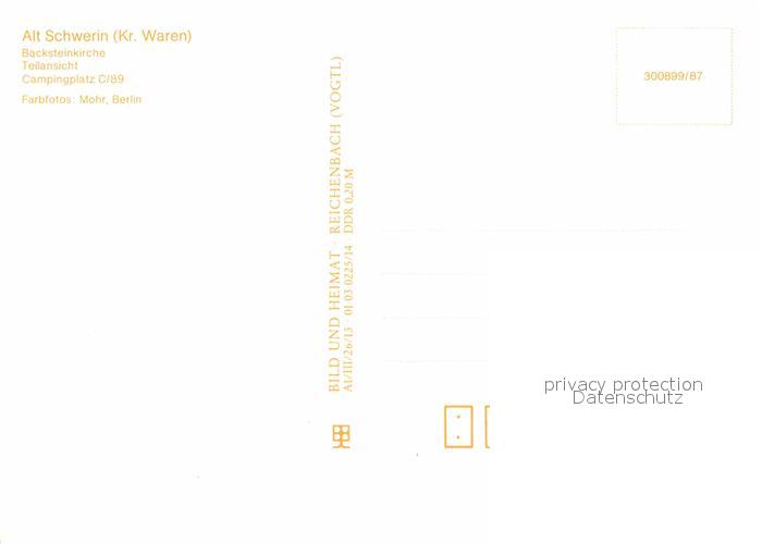 72639042 Alt Schwerin Backsteinkirche Campingplatz C/89 postalisch nicht gelaufen Erhaltung siehe scans [NatalD47] KatCode: 11110013056004