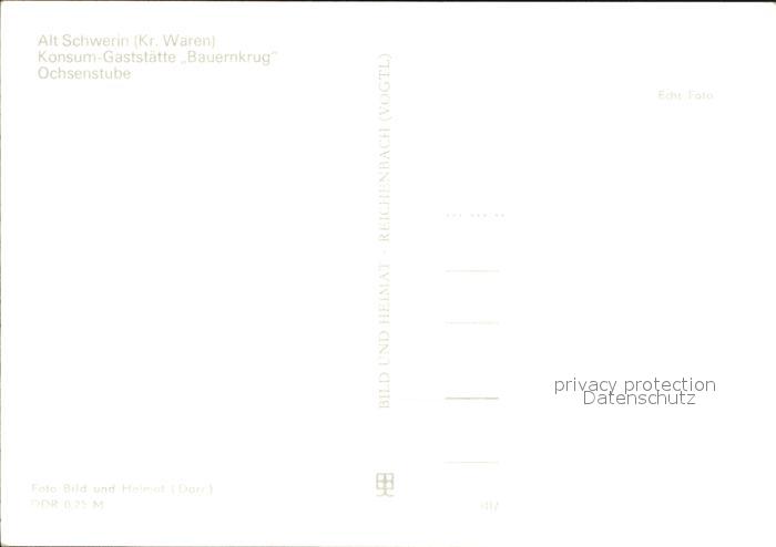 72053355 Alt Schwerin Konsum Gaststaette Bauernkrug Ochsenstube postalisch nicht gelaufen Erhaltung siehe scans KatCode: 11110013056004