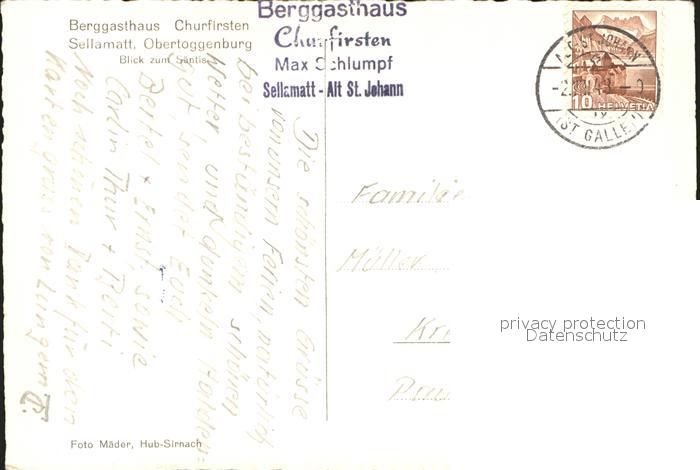 11853564 alte Postkarte Alt St Johann Berggasthaus Churfirsten postalisch gelaufen Erhaltung siehe scans KatCode: 11470190585768