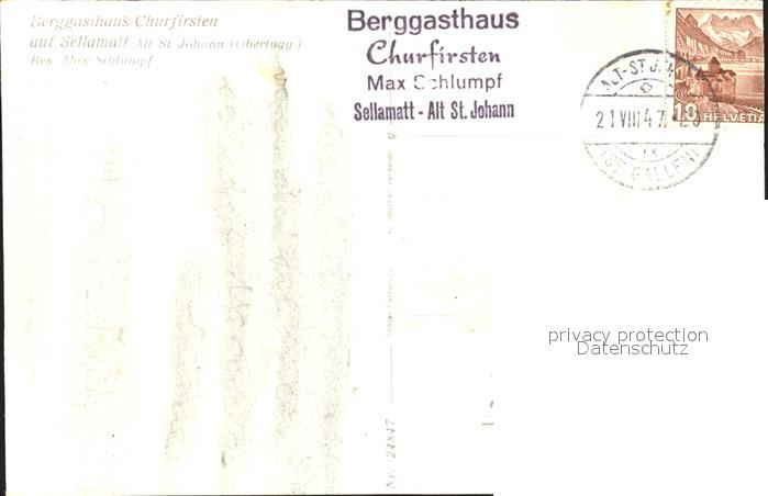 11747768 alte Postkarte Alt St Johann Berggasthaus Churfuersten Sellamatt postalisch gelaufen Erhaltung siehe scans KatCode: 11470190585768