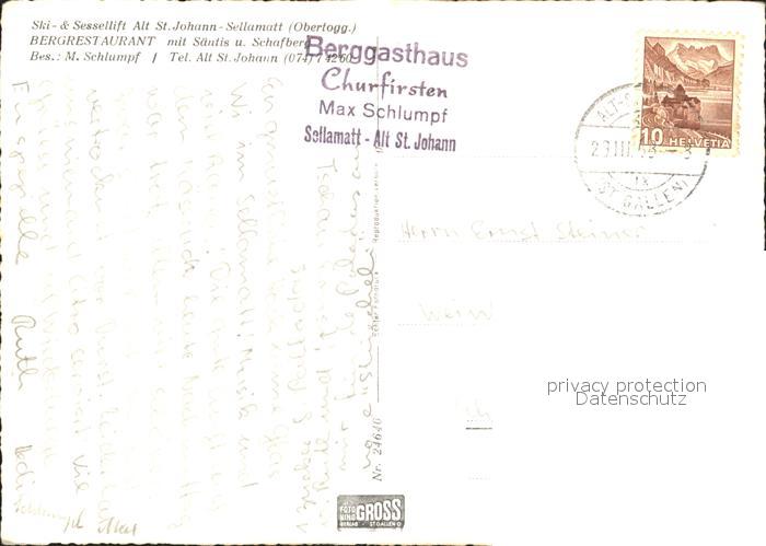 11630918 alte Postkarte Alt St Johann Berggsthaus Churfirsten postalisch gelaufen Erhaltung siehe scans KatCode: 11470190585768