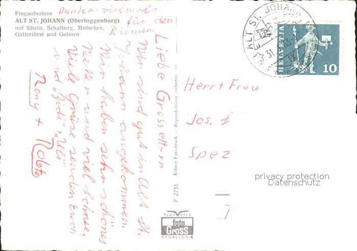 11632698 alte Postkarte Alt St Johann Fliegeraufnahme postalisch gelaufen Erhaltung siehe scans KatCode: 11470190585768