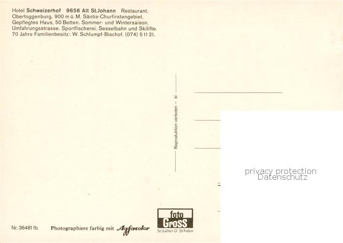 13866970 Alt St Johann Hotel Schweizerhof Restaurant postalisch nicht gelaufen Erhaltung siehe scans [WerneD78] KatCode: 11470190585768