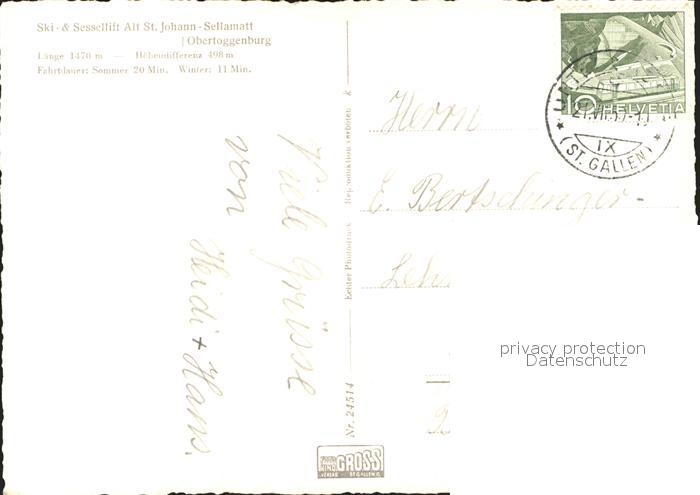11646332 alte Postkarte Alt St Johann Ortsansicht mit Kirche Sessellift Talstation postalisch gelaufen Erhaltung siehe scans KatCode: 11470190585768