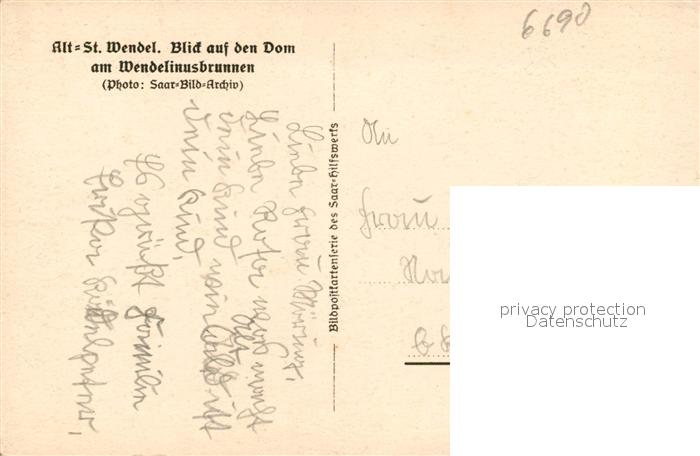 43350610 Alt St Wendel Wendelinusbrunnen Pferdetraenke Blick auf den Dom postalisch nicht gelaufen Erhaltung siehe scans [FriedD77] KatCode: 11110010046117