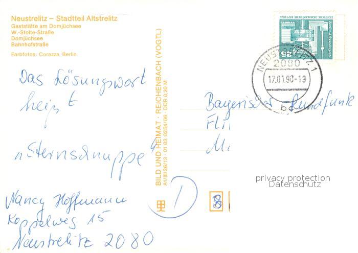 73654890 alte Postkarte Alt Strelitz Gaststaette am Domjuechsee Stolte Strasse Domjuechsee Bahnhofstrasse postalisch gelaufen Erhaltung siehe scans [WerneD78] KatCode: 11110013055050