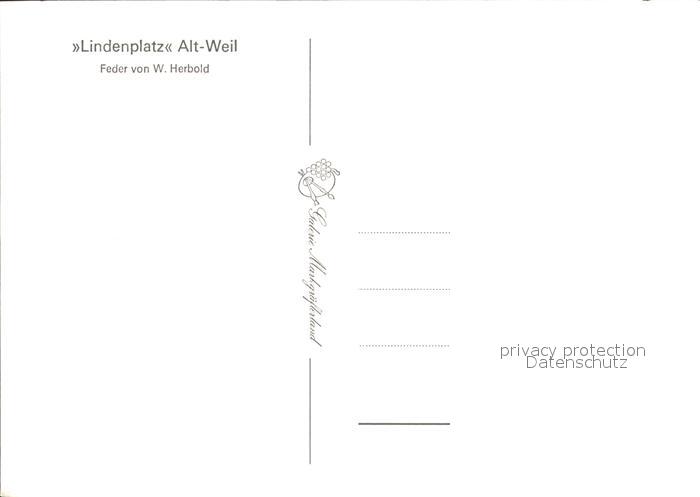 72253673 Alt Weil Rhein Lindenplatz Kirche Federzeichnung von W Herbold Kuenstlerkarte postalisch nicht gelaufen Erhaltung siehe scans KatCode: 11110008336091