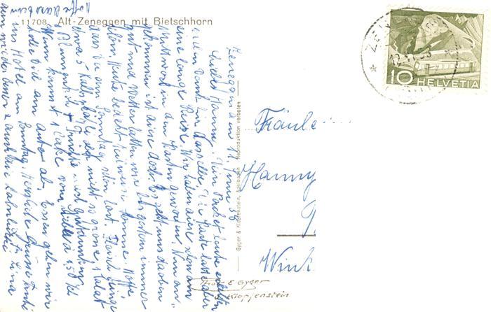 13908437 Alt-Zeneggen VS mit Bietschhorn postalisch gelaufen Erhaltung siehe scans [FriedD77] alte Postkarte Frie Katcode 11470230750770