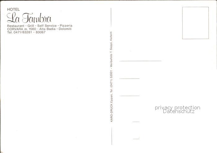 Alta Badia Hotel La Tambra Restaurant Dolomiten postalisch nicht gelaufen Erhaltung siehe scans