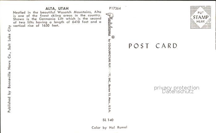 72444368 Alta Utah Skiing area in the Wasatch Mountains postalisch nicht gelaufen Erhaltung siehe scans KatCode: 14140470000000