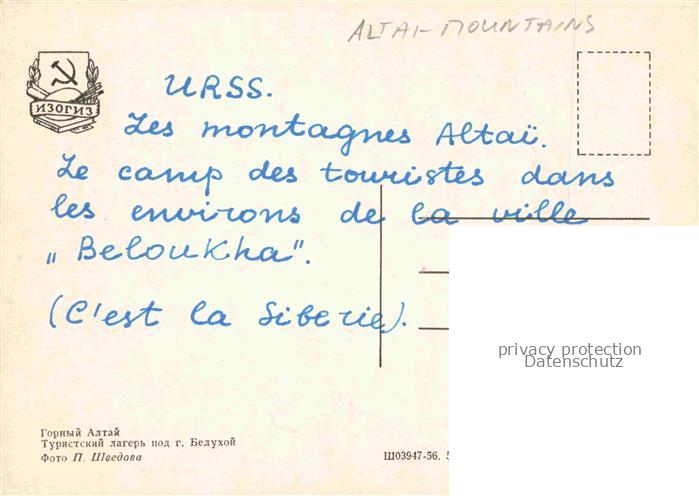 74009070 Altai-Mountains Altai-Gebirge Mongolia Camp des touristes postalisch nicht gelaufen Erhaltung siehe scans [FriedD77] KatCode: 12020