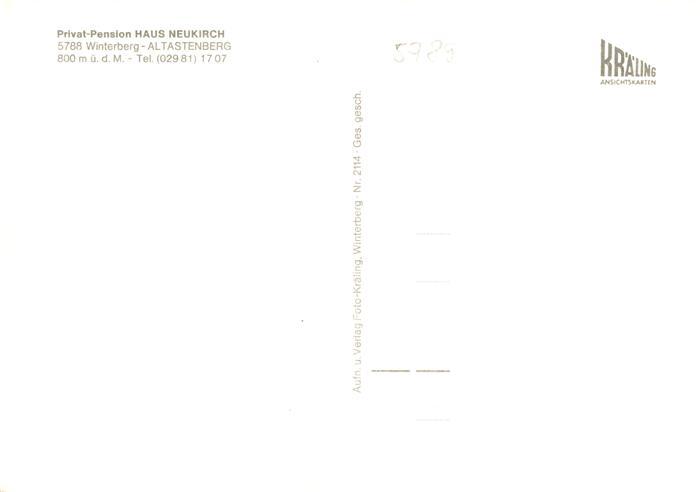 73869871 Altastenberg Pension Haus Neukirch postalisch nicht gelaufen Erhaltung siehe scans [FriedD77] KatCode: 11110005958048