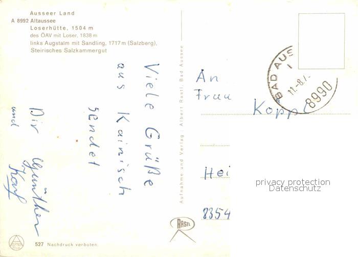 72621341 alte Postkarte Altaussee Ausseer Land Loserhuette postalisch gelaufen Erhaltung siehe scans [LiesaD40] KatCode: 11390222061204