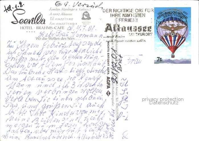 72486343 alte Postkarte Altaussee Hotel Brahms Cafe postalisch gelaufen Erhaltung siehe scans KatCode: 11390222061204