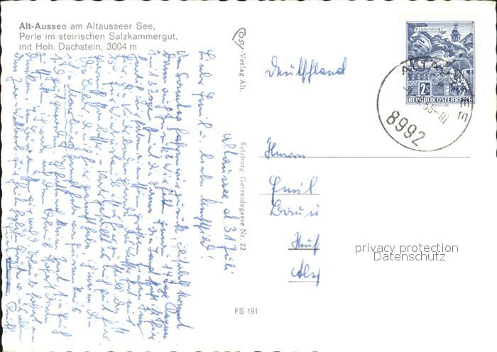 72450811 alte Postkarte Altaussee mit Hoh und Dachstein postalisch gelaufen Erhaltung siehe scans KatCode: 11390222061204