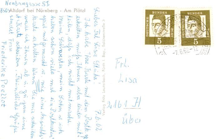 73940185 alte Postkarte Altdorf Nuernberg Am Plaetzl postalisch gelaufen Erhaltung siehe scans [WerneD78] KatCode: 11110009574112