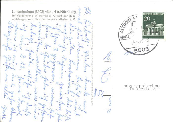 72177575 alte Postkarte Altdorf Nuernberg Fliegeraufnahme postalisch gelaufen Erhaltung siehe scans KatCode: 11110009574112