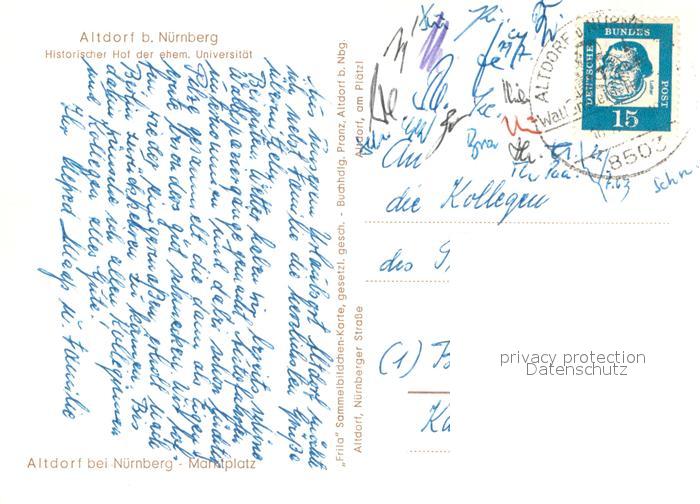 73736307 alte Postkarte Altdorf Nuernberg Historischer Hof der ehemaligen Universitaet Marktplatz postalisch gelaufen Erhaltung siehe scans [FriedD77] KatCode: 11110009574112