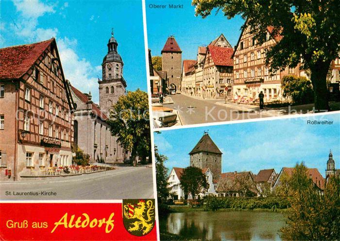 72751865 alte Postkarte Altdorf Nuernberg Laurentius Kirche Rossweiher Oberer Markt postalisch gelaufen Erhaltung siehe scans [KathaD81] KatCode: 11110009574112