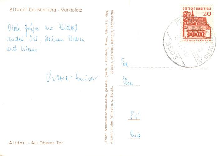 73878877 alte Postkarte Altdorf Nuernberg Marktplatz Am oberen Tor postalisch gelaufen Erhaltung siehe scans [FriedD77] KatCode: 11110009574112