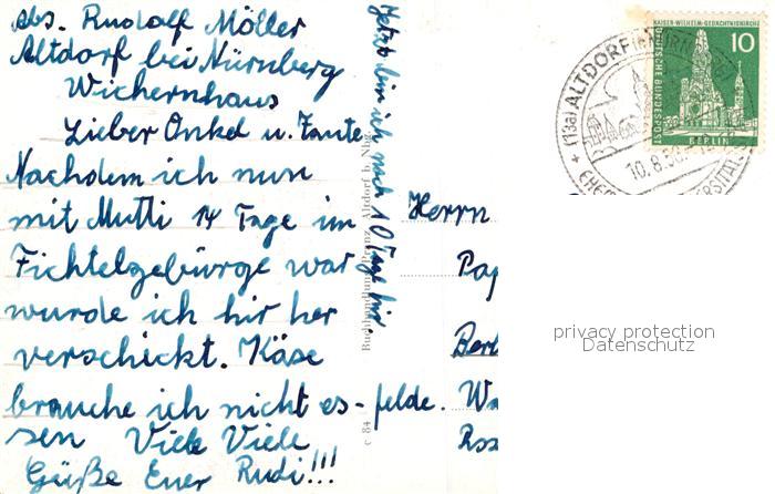 72926322 alte Postkarte Altdorf Nuernberg Marktplatz Oberes Tor Krankenhaus Am Oberen Tor Rathaus Stadtkirche Markt Hof der ehem Universitaet postalisch gelaufen Erhaltung siehe scans [WerneD78] KatCode: 11110009574112