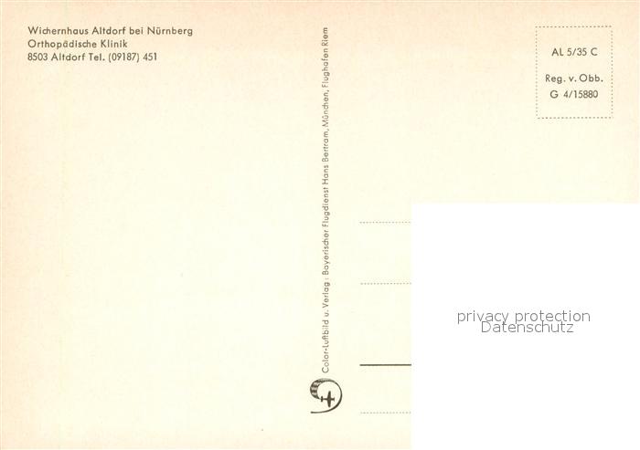 73656225 Altdorf Nuernberg Wichernhaus Orthopaed Klinik Fliegeraufnahme postalisch nicht gelaufen Erhaltung siehe scans [WerneD78] KatCode: 11110009574112