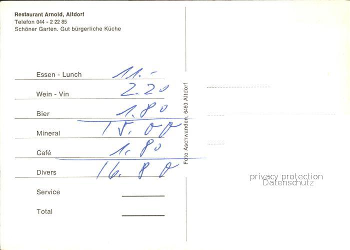 72271637 Altdorf UR Restaurant Arnold postalisch nicht gelaufen Erhaltung siehe scans KatCode: 11470220685178