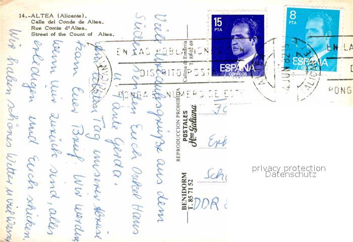 old postcard Altea Calle de Conde postalisch gelaufen Erhaltung siehe scans [WerneD78]