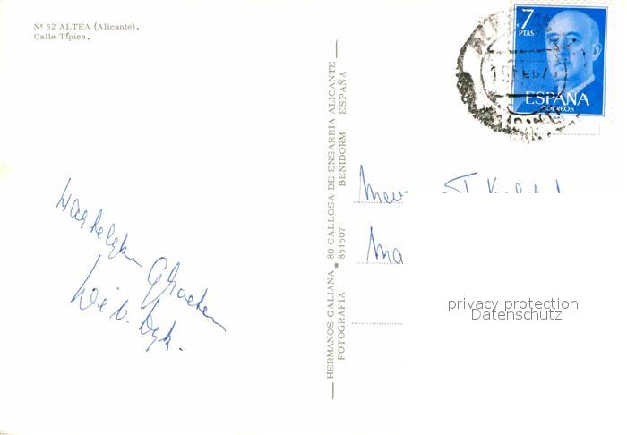 old postcard Altea Calle tipica postalisch gelaufen Erhaltung siehe scans [WerneD78]