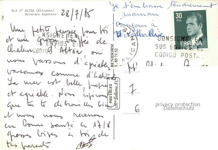 74026191 old postcard Altea Costa Blanca ES Ortsmotive Zentrum Hafen Ansich vom Meer aus postalisch gelaufen Erhaltung siehe scans [FriedD77] KatCode: 11510