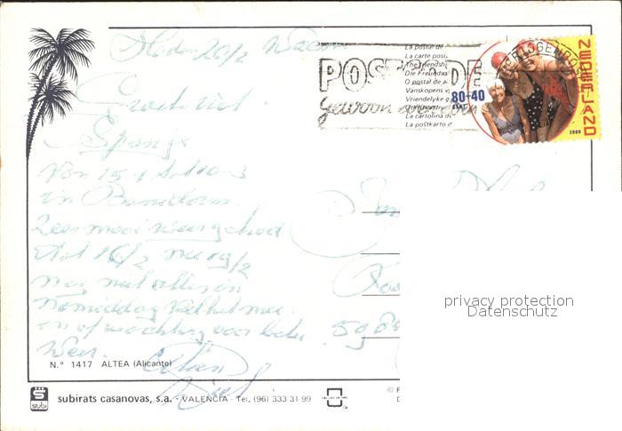old postcard Altea Fliegeraufnahme postalisch gelaufen Erhaltung siehe scans