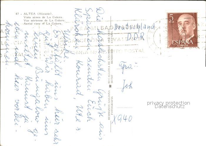 old postcard Altea Fliegeraufnahme postalisch gelaufen Erhaltung siehe scans