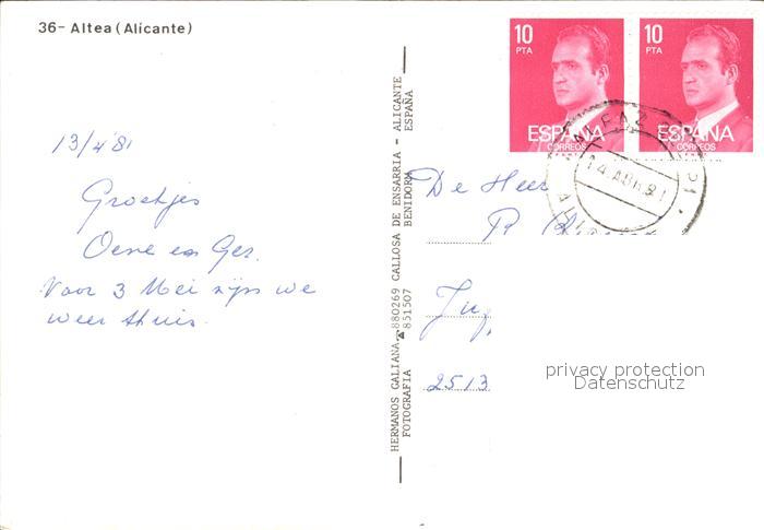 old postcard Altea Hafen Ortspartie Panorama Kueste postalisch gelaufen Erhaltung siehe scans