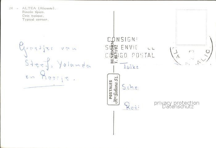 old postcard Altea Rincon tipico postalisch gelaufen Erhaltung siehe scans